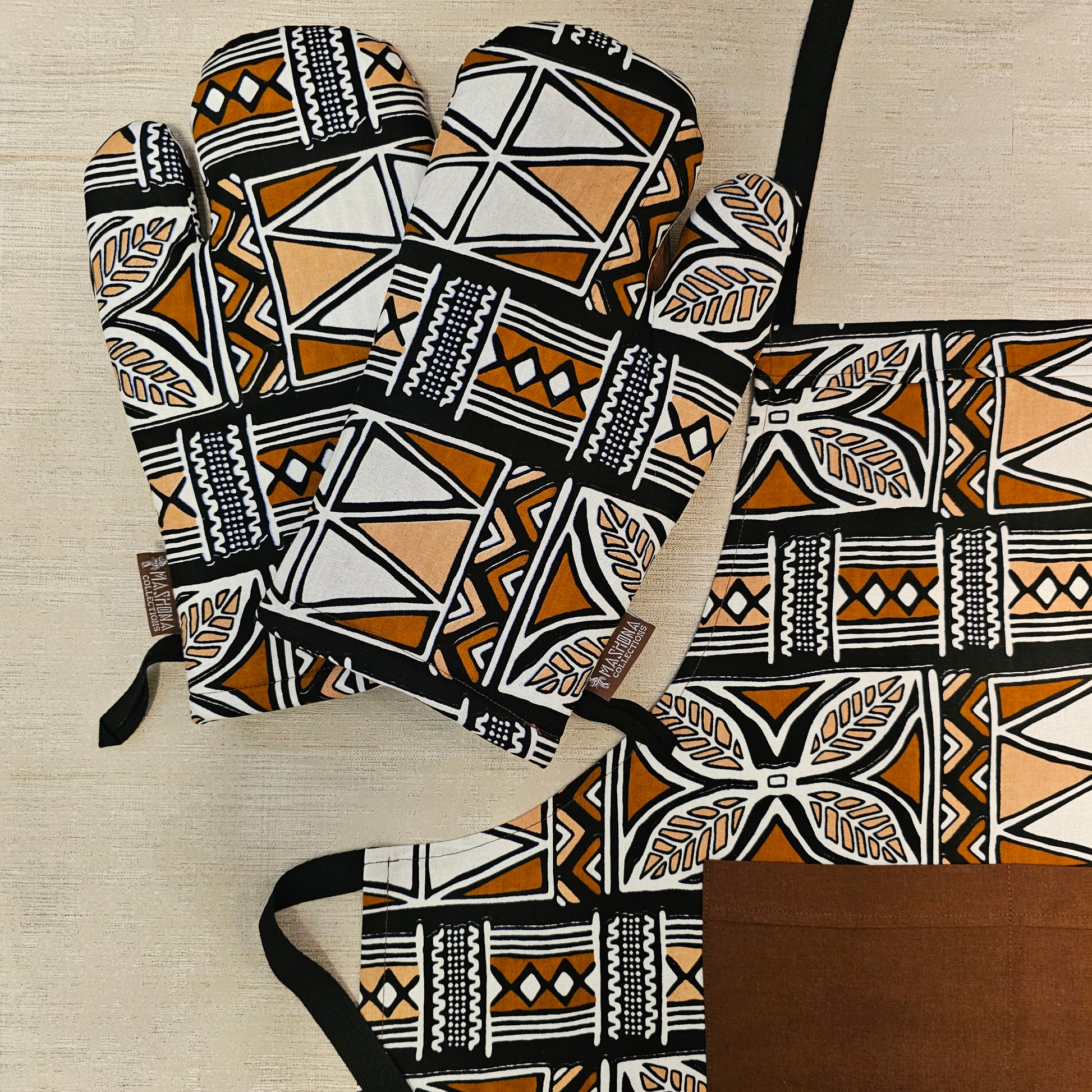 Handmade Apron and Matching Oven Gloves Set | 100% Cotton African Print Fabric