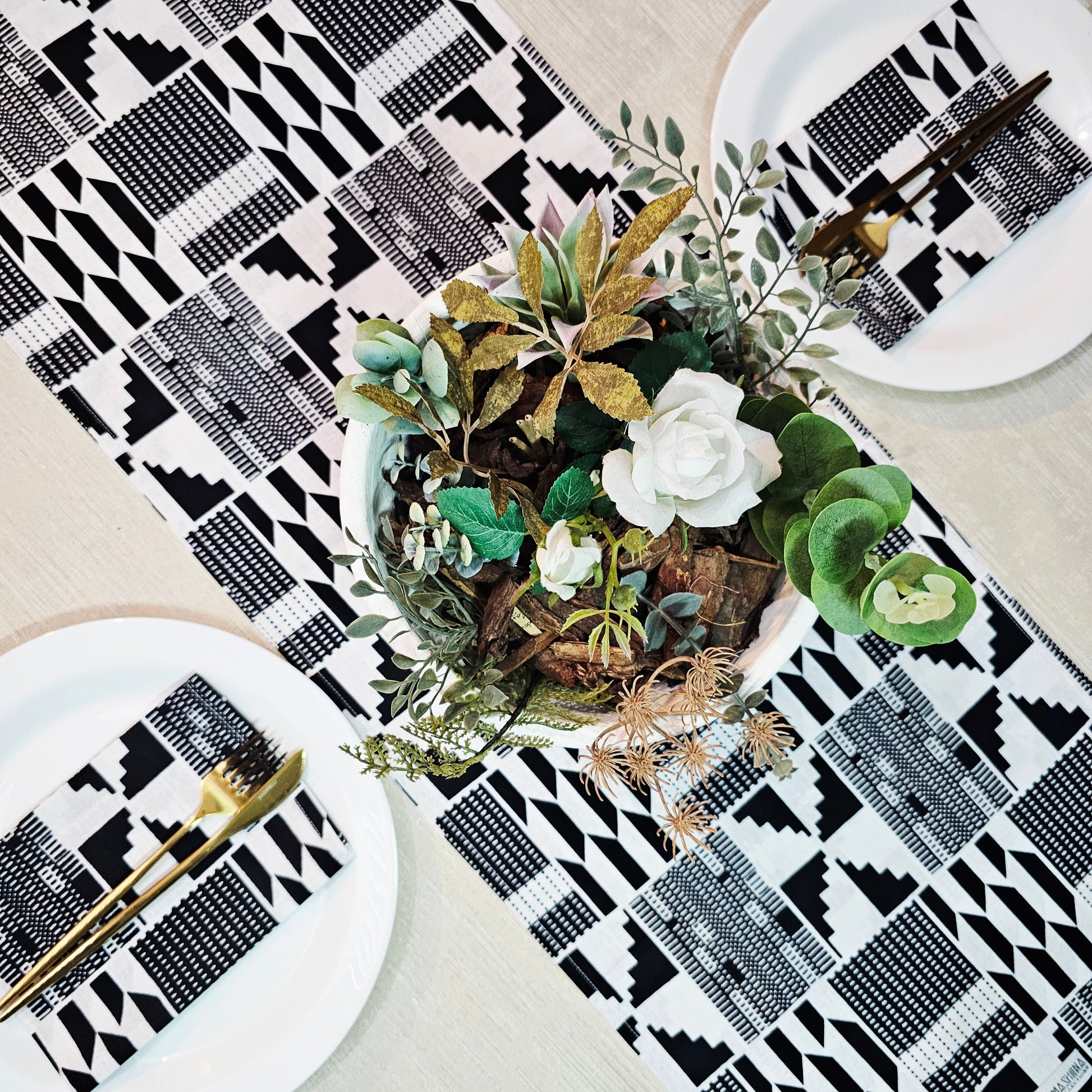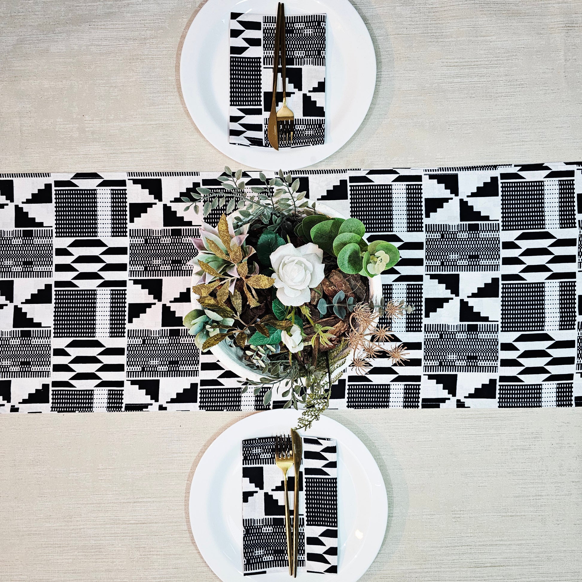 Table Runner and Set of 8 Napkins | 100% Cotton African Print Fabric